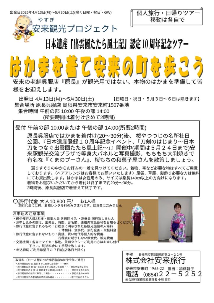 【お知らせ】安来旅行が実施する「はかまを着て安来の町を歩こうツアー」