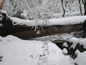 2月7日からの積雪により、清水寺境内で複数の倒木が発生しているため当面の間臨時閉山いたします。
