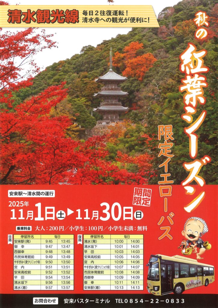 【紅葉シーズン限定】イエローバス 清水観光線を運行します!
