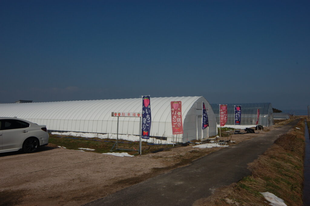 安来市赤江町(Googleマップにて「さわこ苺農園」で検索してください)